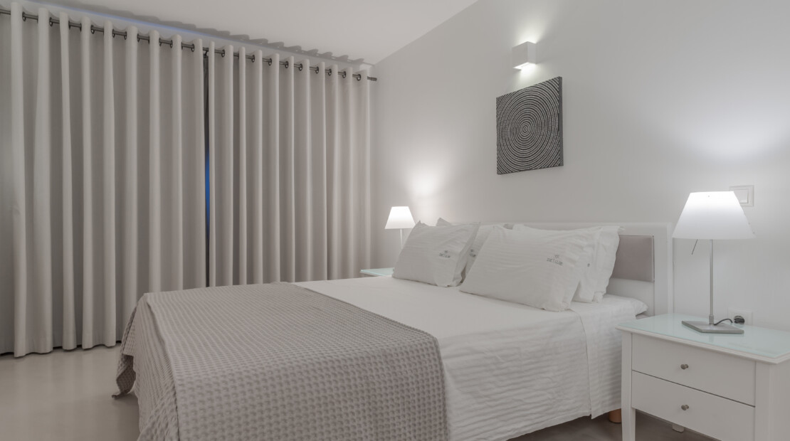 The Junior Suites of Zoe’s Club are located on the ground floor and promise a most enjoyable stay. The hidden lighting featured throughout and the soft white tones with grayscale touches here and there create a serene setting in which to fully relax. The interiors consist of a bedroom with double bed, a separate living room area with sofa bed and a bathroom with premium toiletries. Externally, the Junior Suites feature an outdoor terrace area where you can unwind under the stars in the evenings.